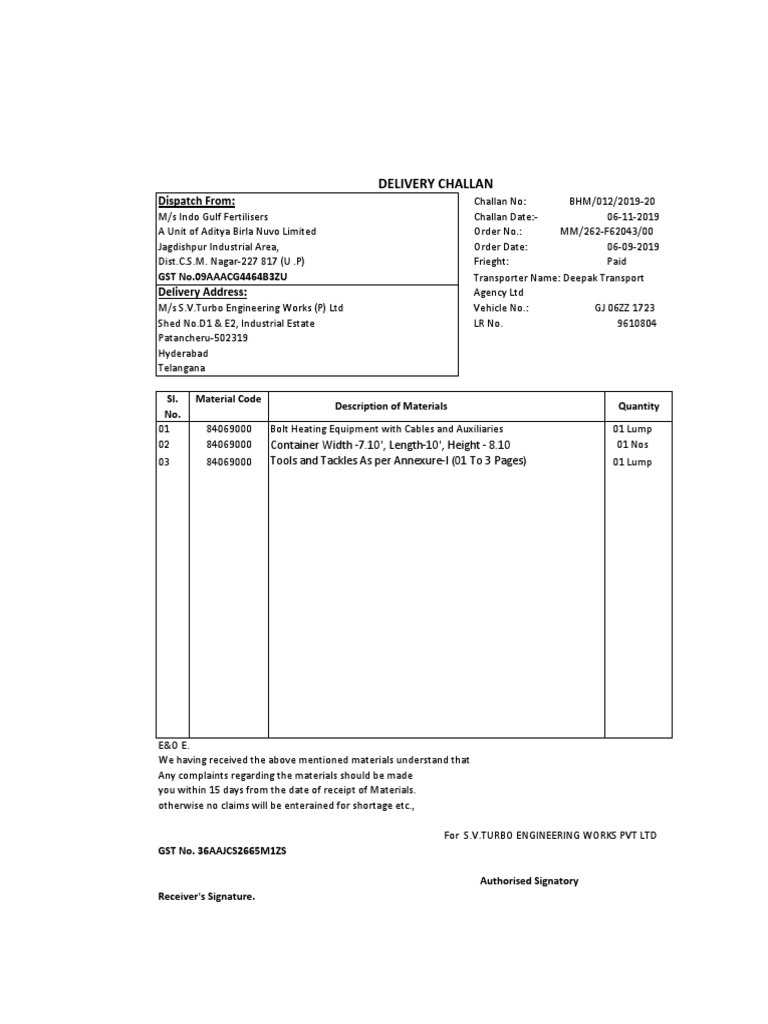 Delivery Challan Under Gst Meaning Uses Format - a in order to return the material in case damage material or extra material in received from the counterparty, we will have to create a delivery challan (purchase return).