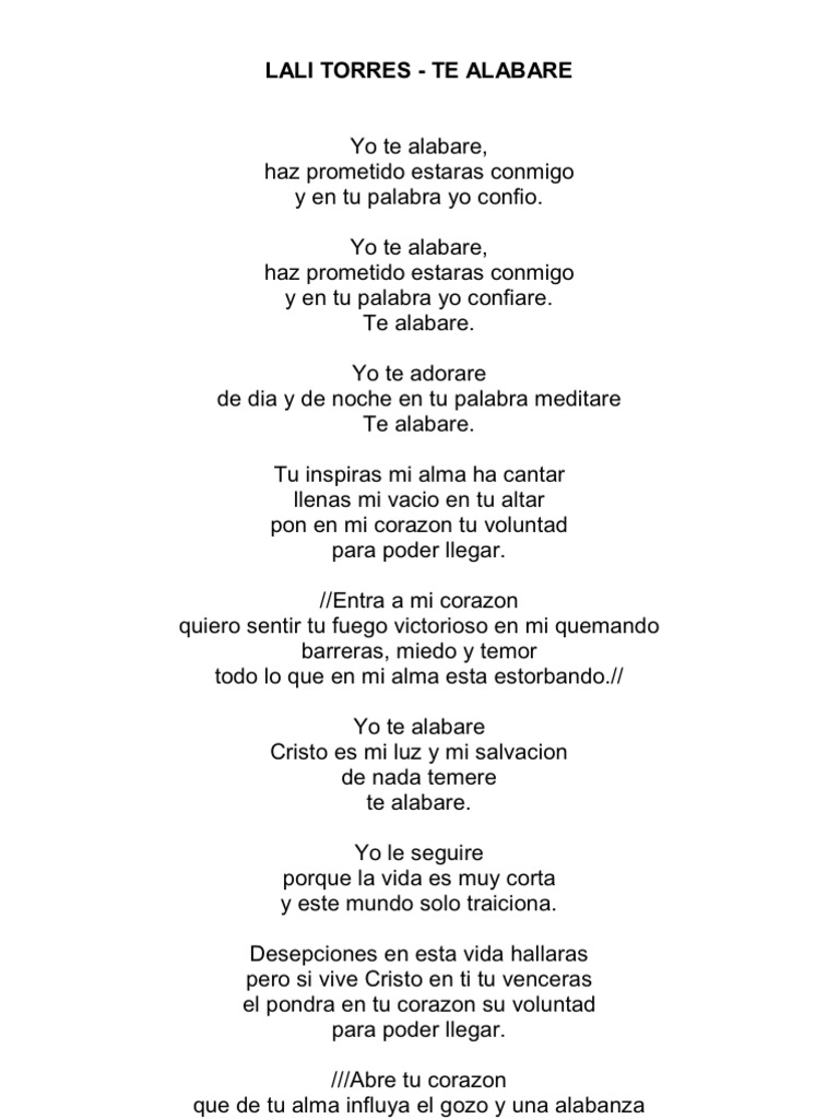 Lyrics T - El senor no quiere que le alabes porque se sienta importante, sino que es un ejercicio que debe nacer desde ti si quieres agradarle ya que, el nos creo por amor, y por amor el procura que todos vivamos en paz, en un mundo libre de pecado y problemas que nos agobian dia a dia.