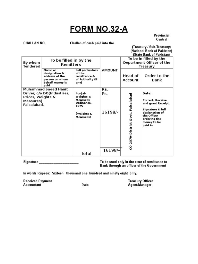 National Bank Challan Form 32A / Tds on payment to resident contractors and professionals (form 26qd). National Bank Challan Form 32A / Challan status enquiry for banks.